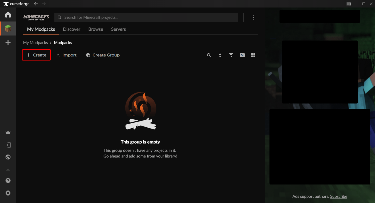 I den här bloggen kommer vi att lära dig grunderna i hur man skapar en modpack för dig själv. För den här bloggen kommer vi att använda CurseForge. Först bör du ladda ner det från deras officiella webbplats. Vi rekommenderar den fristående versionen av CurseForge. Du kan hitta länken här.